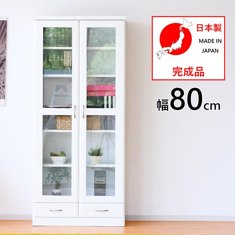本棚 幅80 扉付 大容量 白 日本製 ブックシェルフ おしゃれ キャビネット 収納 書棚 リビングボード ガラス扉 家具 Jun009bo 出産祝い インテリアピース 通販 Yahoo ショッピング
